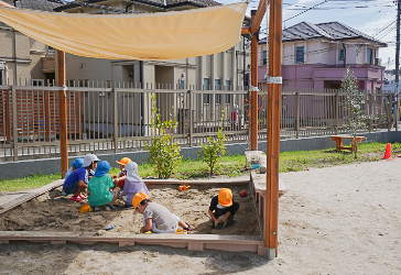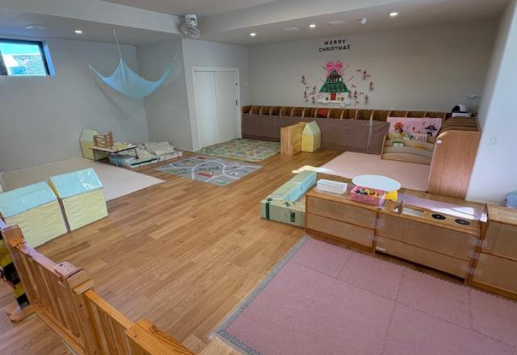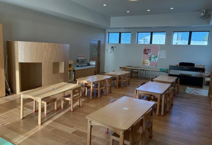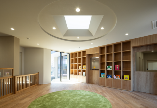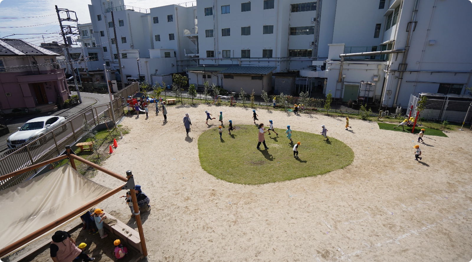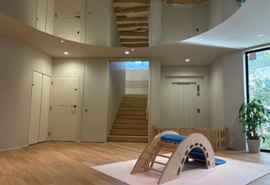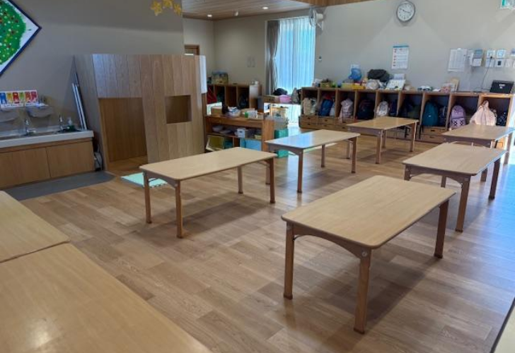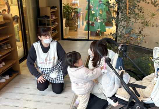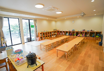 登降園はテラスからです。保護者の方は室内に入らずスムーズな送迎が可能になりました。お子様も広いテラスで気持ちを切り替えやすく笑顔で保育室へ向かえるようになりました。